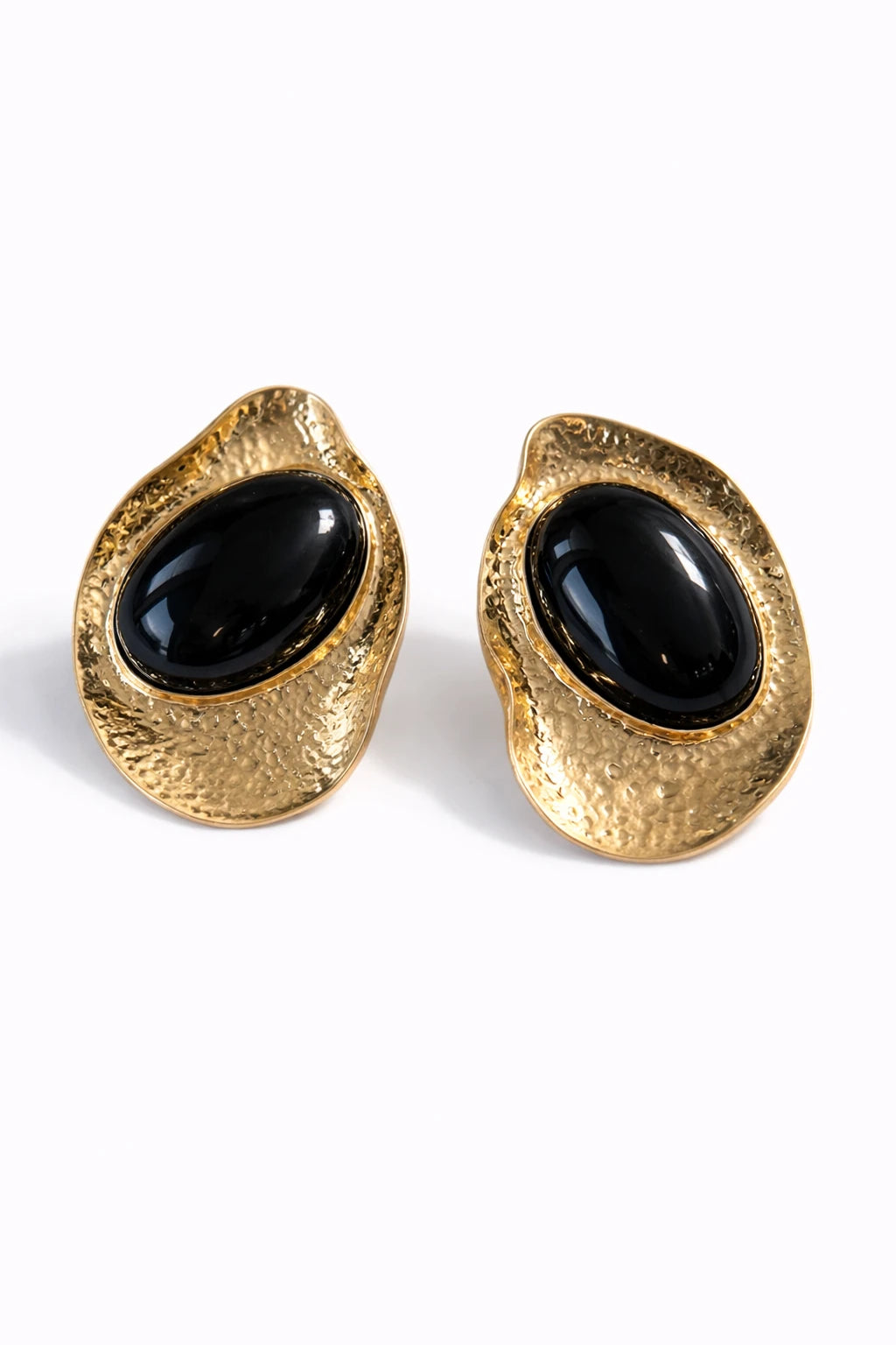 Brinco Orgânico com textura e pedra preta. Garantia de 1 ano no banho. Uma peça,...