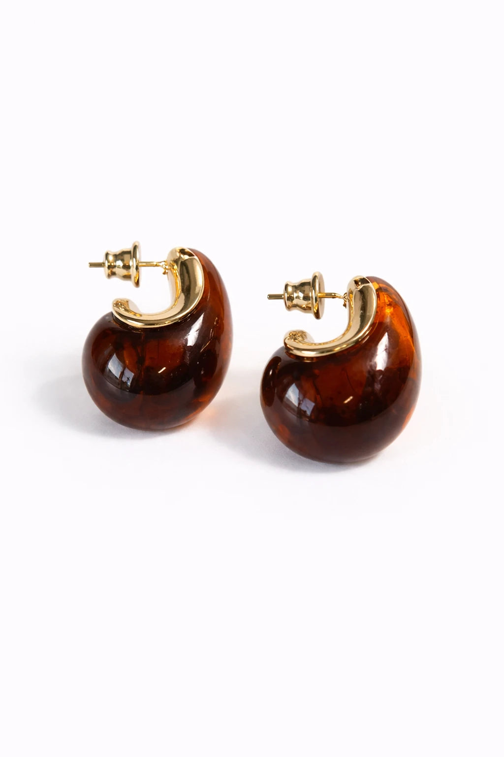 Brinco gota com pedra tartaruga. Garantia de 1 ano no banho. Uma peça, feita no...