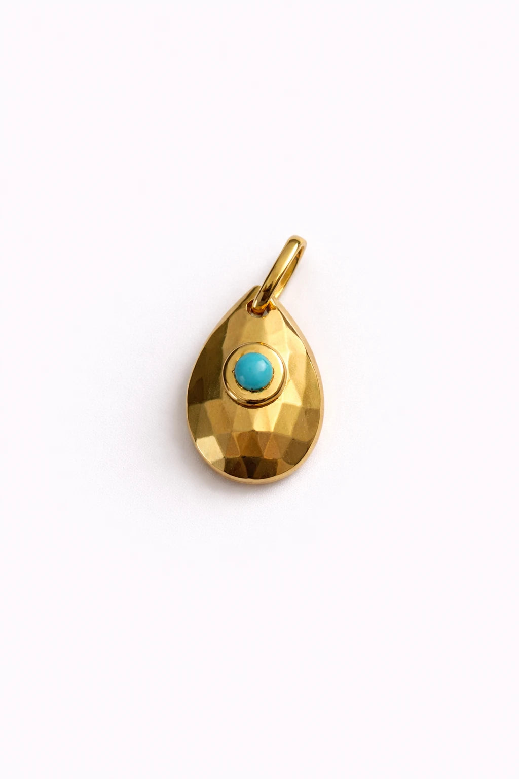 Pingente de metal com pedra turquesa e contra - argola de clic. Garantia de 1...