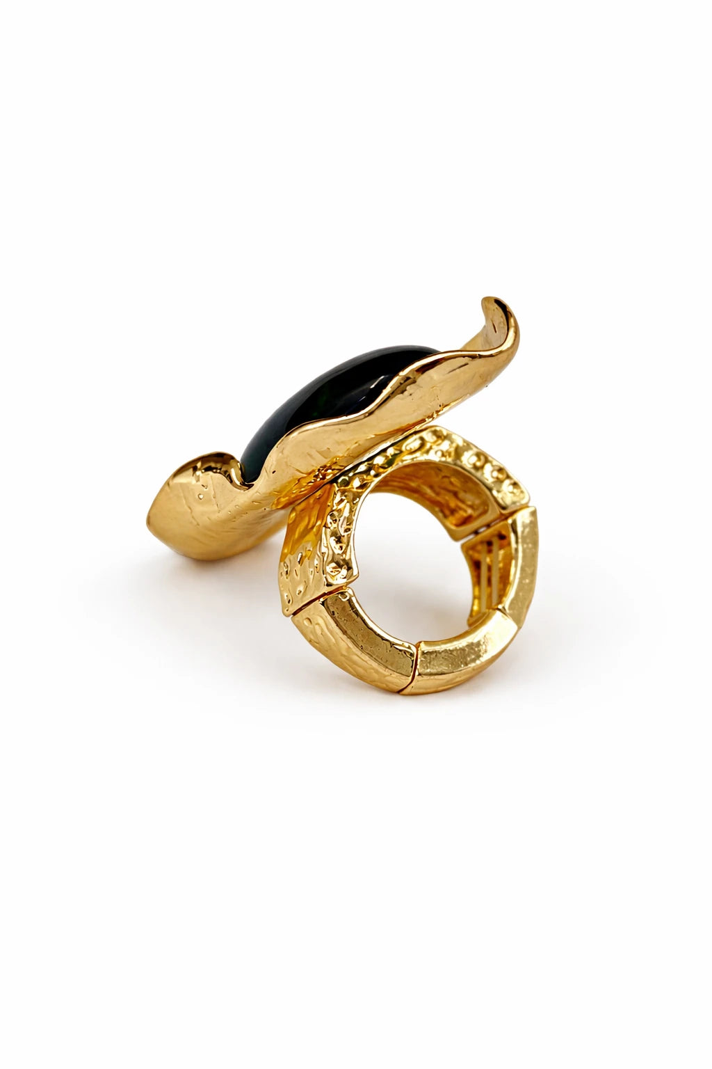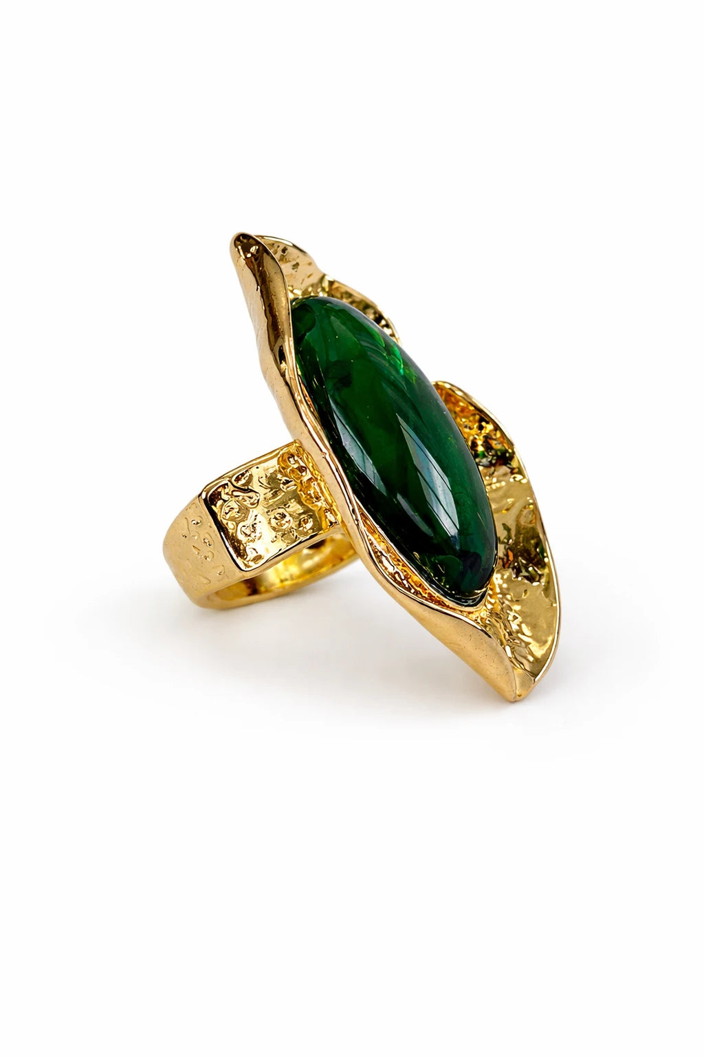 Anel ajustavel com pedra na cor verde.