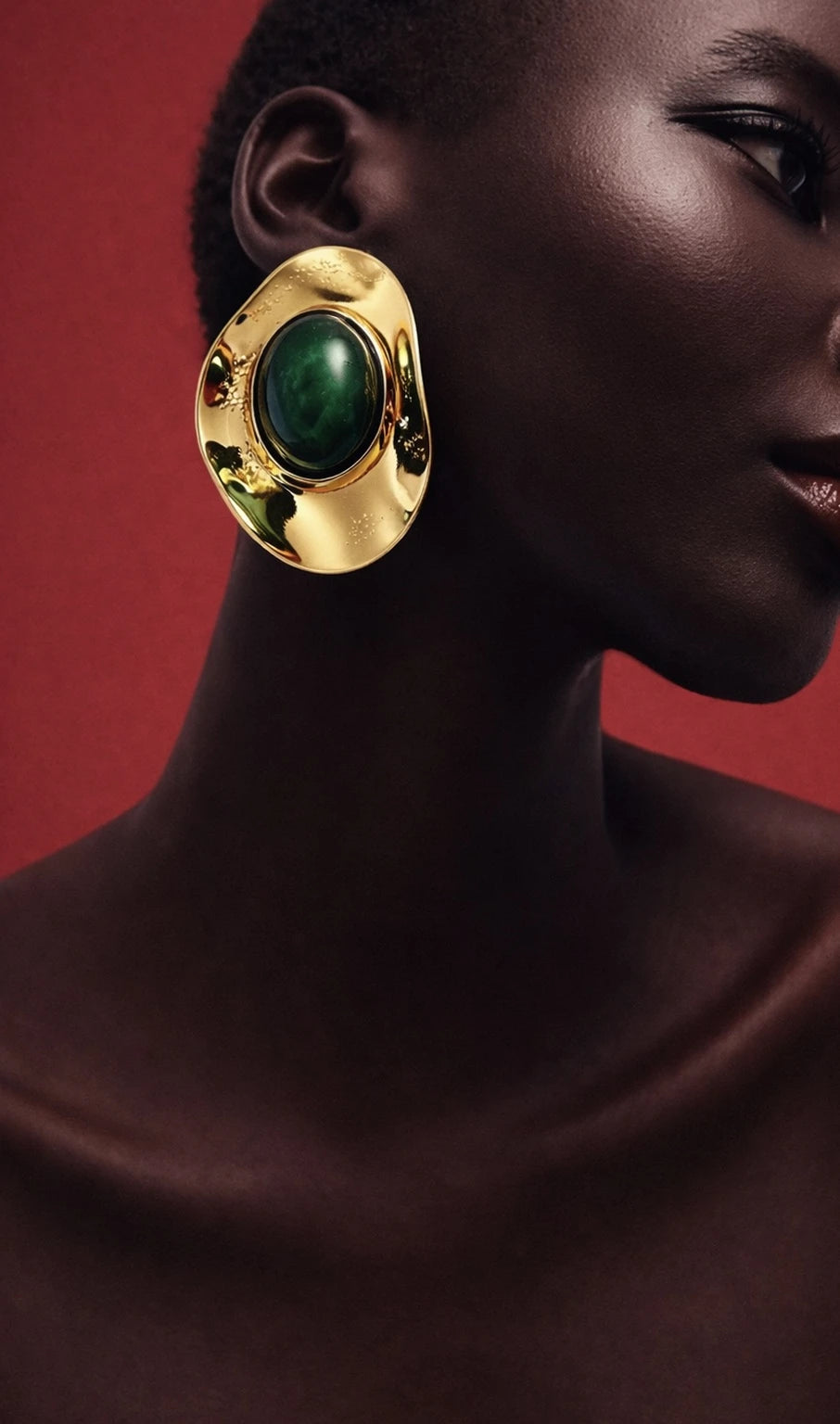 Brinco Orgânico com textura e pedra verde.